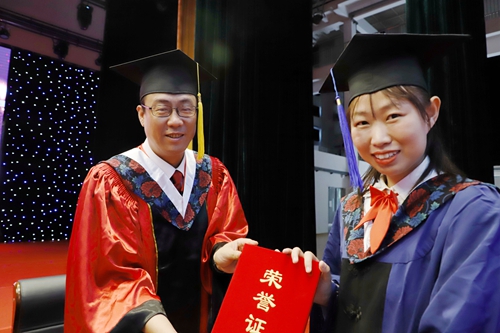 学校党委书记盛婉玉为校级优秀毕业生颁发证书
