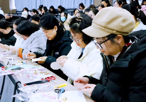 活动的另一大亮点是“指尖上的非遗”——宋锦珍珠风铃制作体验。活动介绍了宋锦的历史渊源、工艺特点及其“锦绣之冠”的文化价值。大家兴致勃勃地挑选心仪的宋锦纹样,将柔软的锦布、圆润的珍珠与清脆的铜铃巧妙结合,亲手制作出一个个独具匠心的风铃。活动现场欢声笑语不断,大家在穿针引线、精心雕琢的过程中,不仅体验了传统手工艺的乐趣,更感受到了中华优秀传统文化的魅力,活动为紧张的工作生活增添了一抹艺术的色彩。